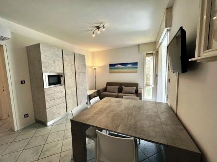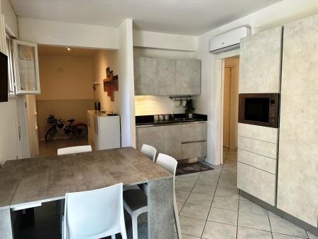 GRADO PINETA in a quiet area and a few steps from the beach (Pineta Beach establishment) recently renovated apartment, 1st floor. Entrance, kitchen corner, living room, hallway, two bedrooms, bathroom/shower (with window), veranda terrace. Clima (combi). Condominium parking space. Euro 165.000,00.