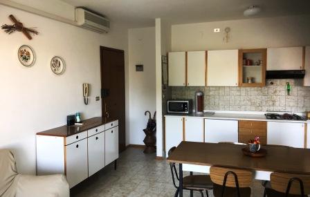 GRADO Città Giardino a few steps from the beach entrance (Lido di Fido) apartment in a little building, located on the second floor, consisting of entrance, living room, kitchen corner, one bedroom, bathroom/shower, terrace. Air conditioning. Owned parking space. Euro 160.000,00 negotiable.