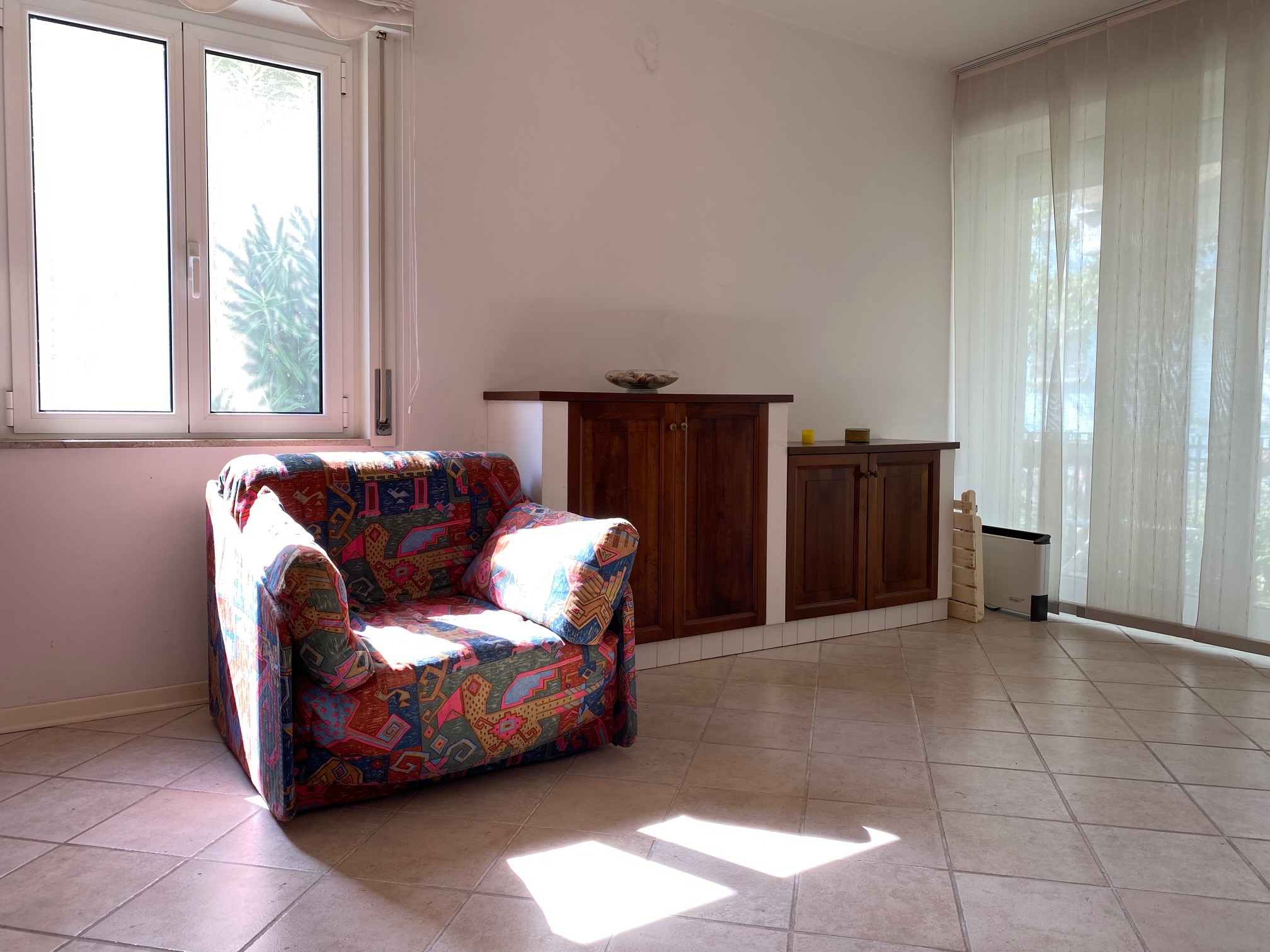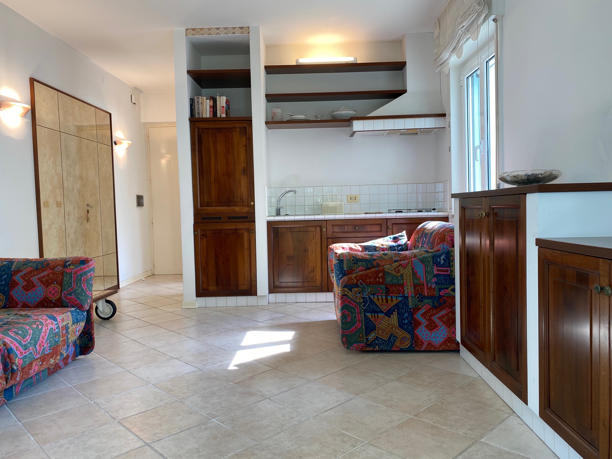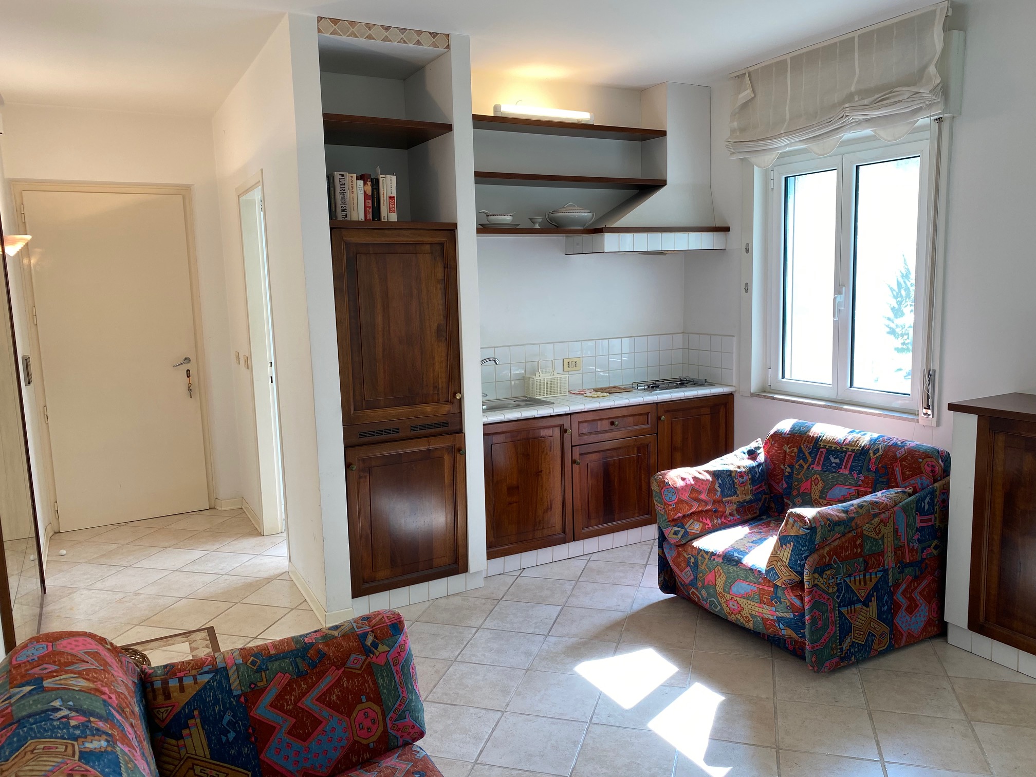 GRADO CITTA’ GIARDINO, Viale Kennedy, opposite the supermarket Despar, studio apartment on the mezzanine floor. Entrance hall, kitchencorner, multipurpose room, bathroom/shower (with window), west-facing terrace. Air conditioning. Euro 110.000,00 negotiable.