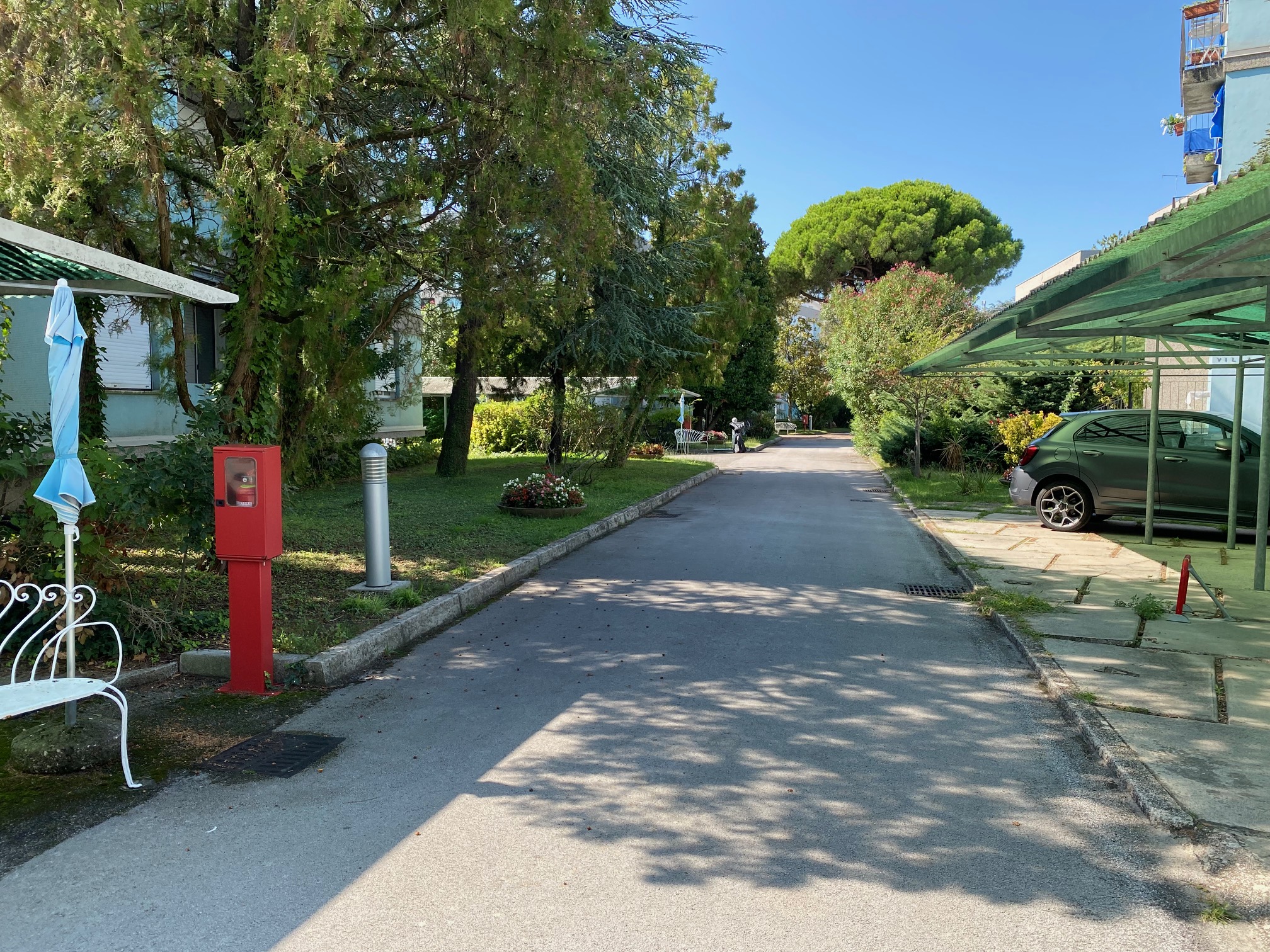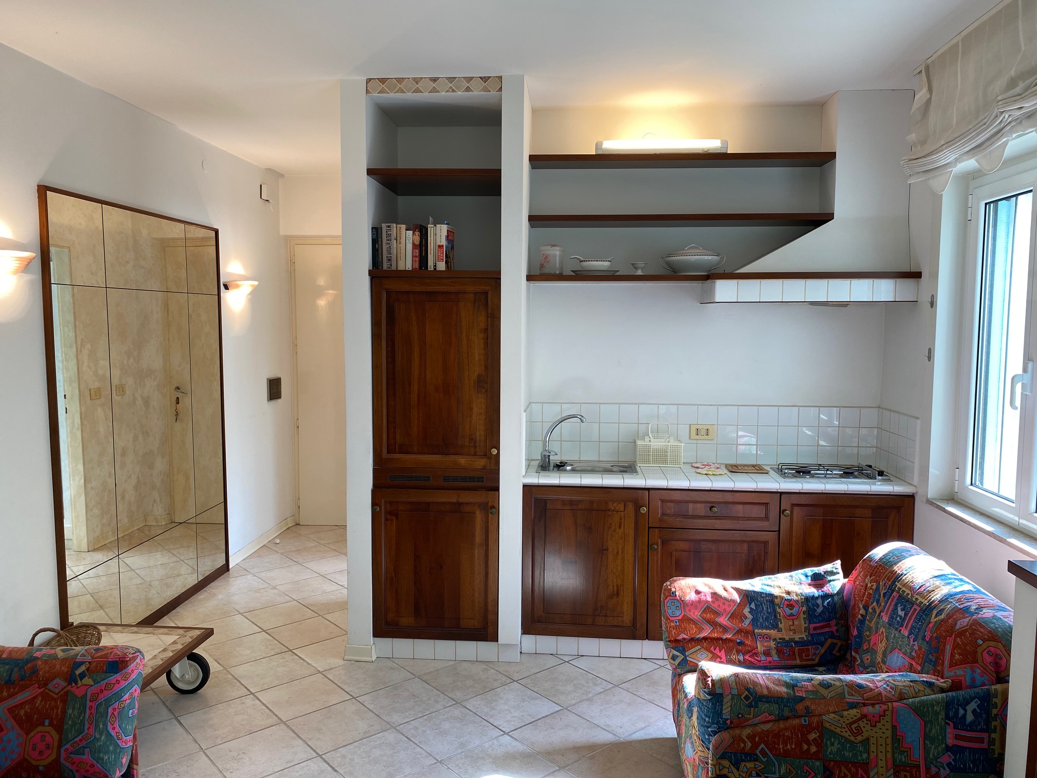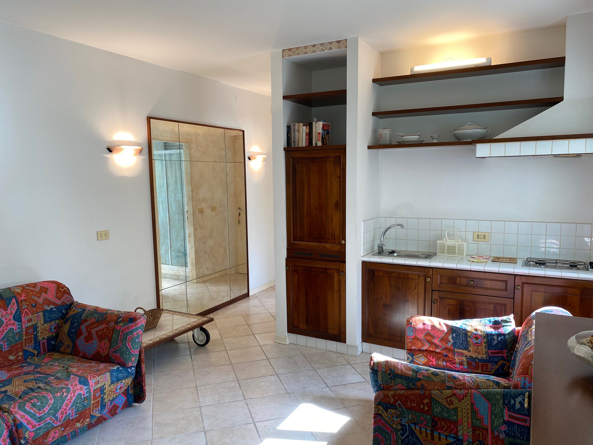GRADO CITTA’ GIARDINO, Viale Kennedy, opposite the supermarket Despar, studio apartment on the mezzanine floor. Entrance hall, kitchencorner, multipurpose room, bathroom/shower (with window), west-facing terrace. Air conditioning. Euro 110.000,00 negotiable.