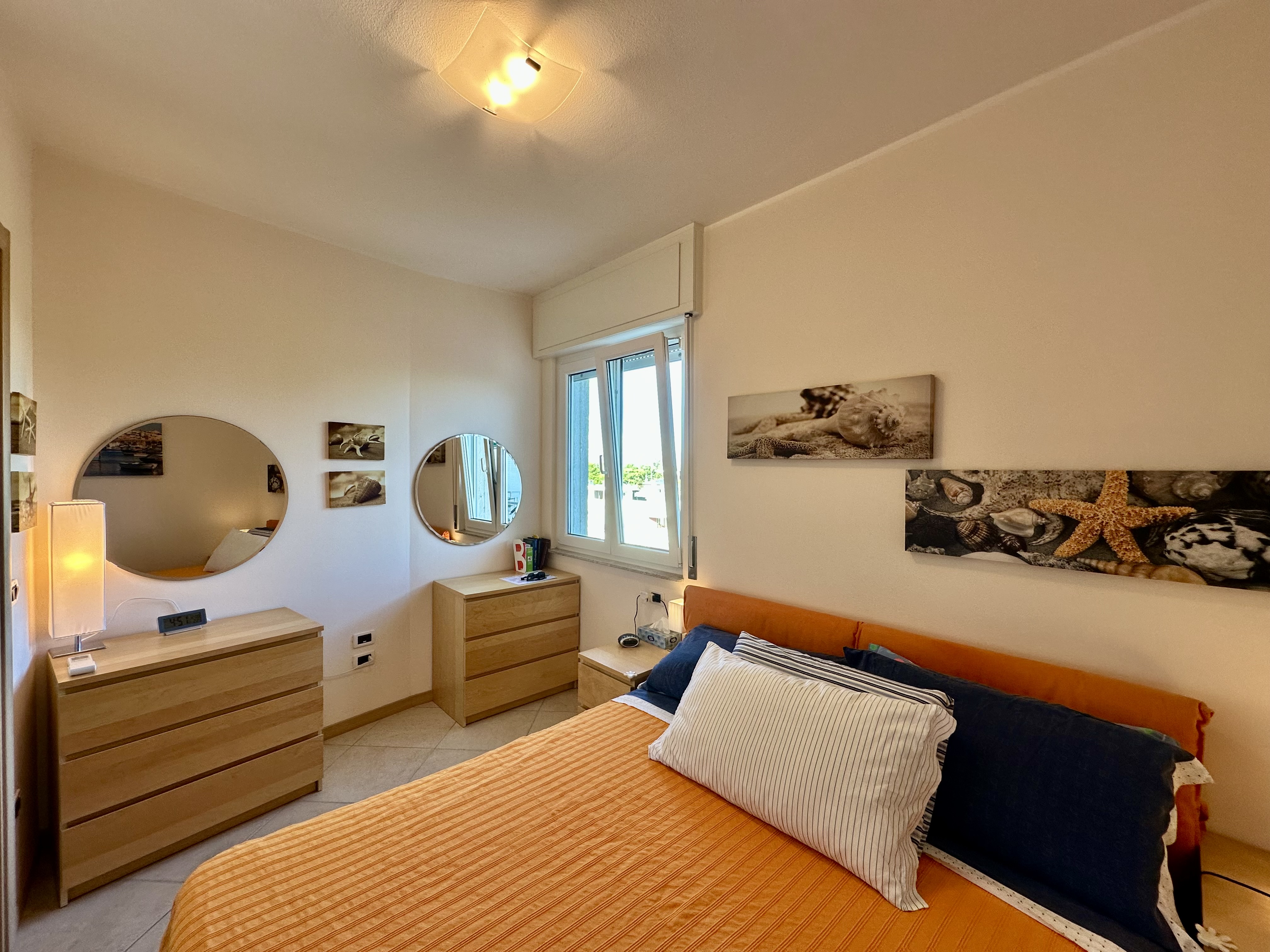 GRADO PINETA in prima fila, appartamento sito all’ultimo piano (4°) con ascensore. Ingresso, soggiorno con accesso alla terrazza, angolo cottura finestrato, disimpegno, una camera matrimoniale, stanza relax con accesso ad una seconda terrazza, servizio/doccia finestrato. Piccola lavanderia esterna. L’appartamento è stato completamente ristrutturato. Clima. Vista panoramica sulla pineta e vistamare da entrambe le terrazze. Euro 225.000,00.