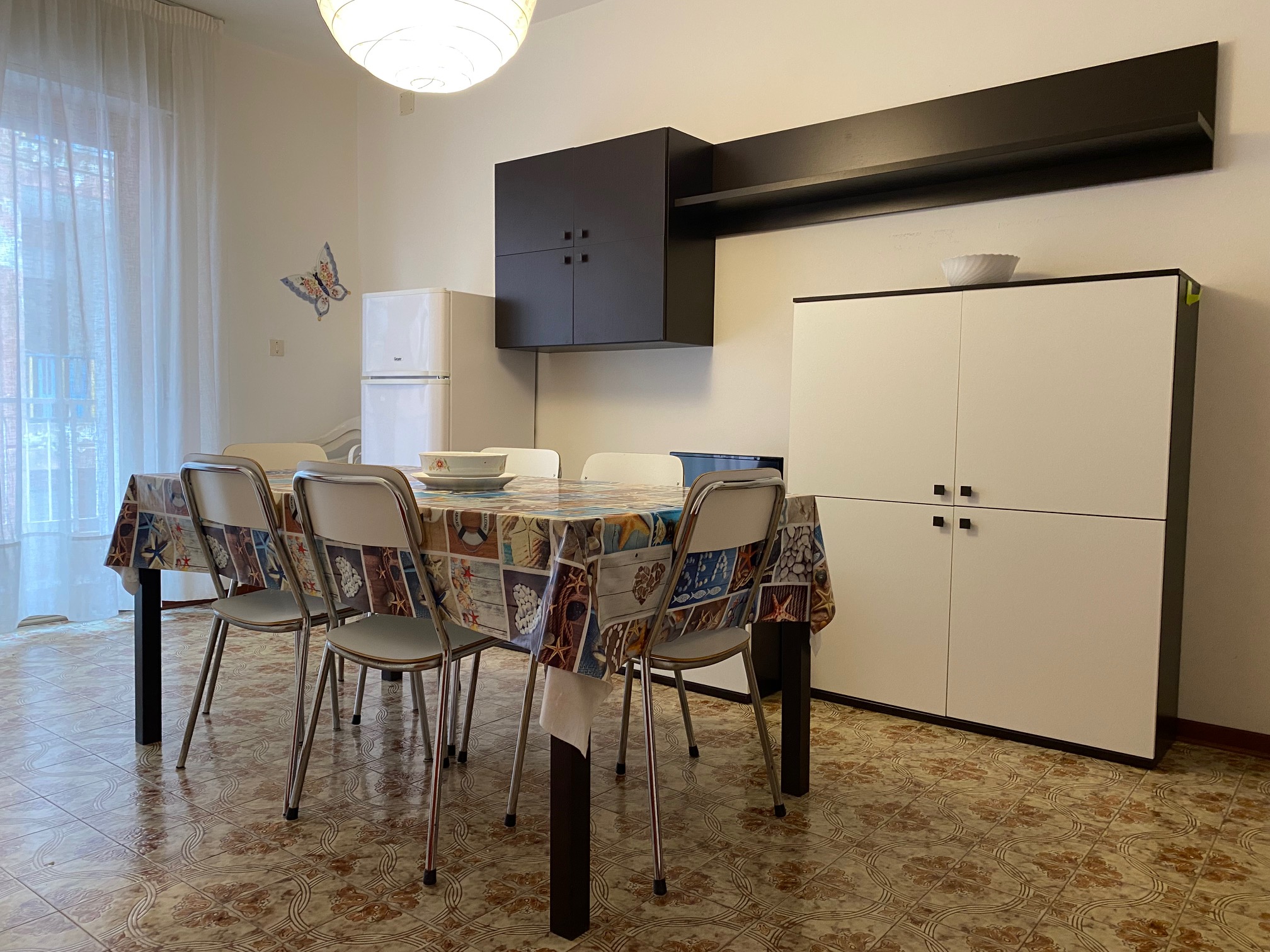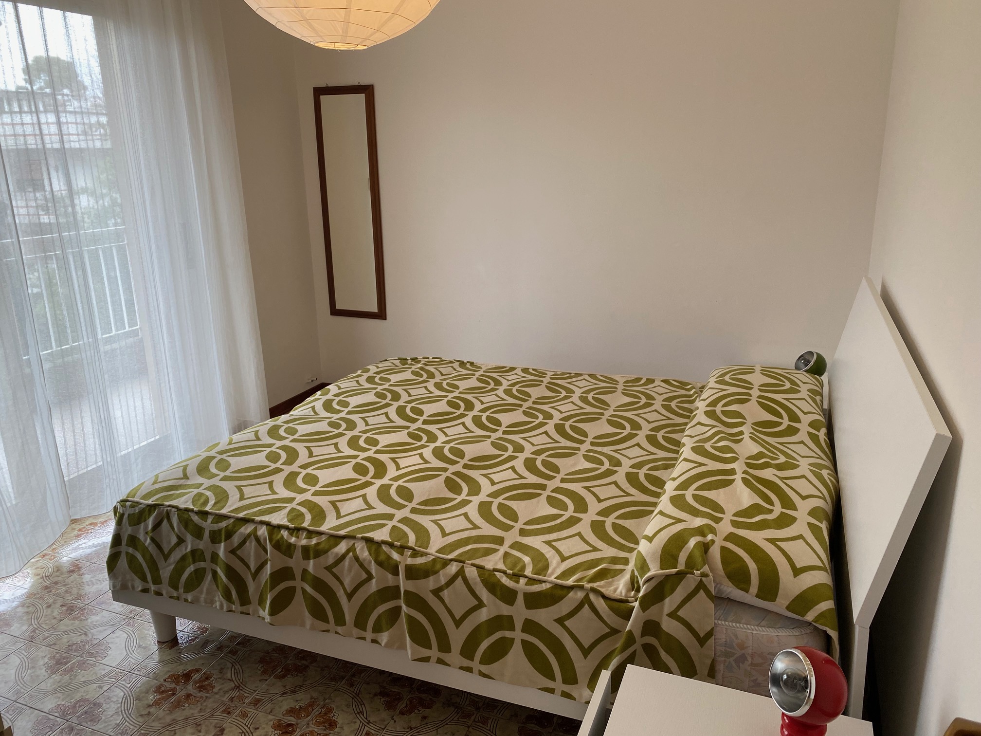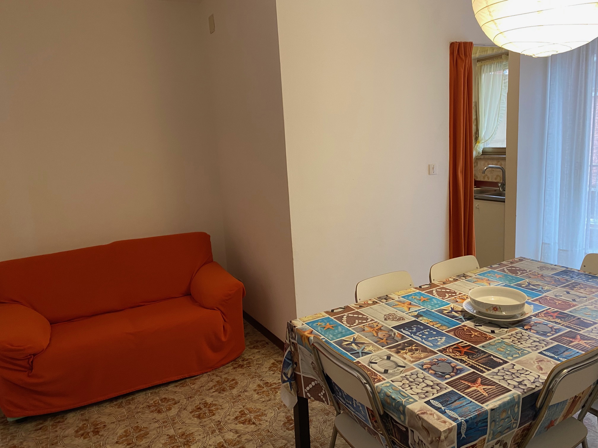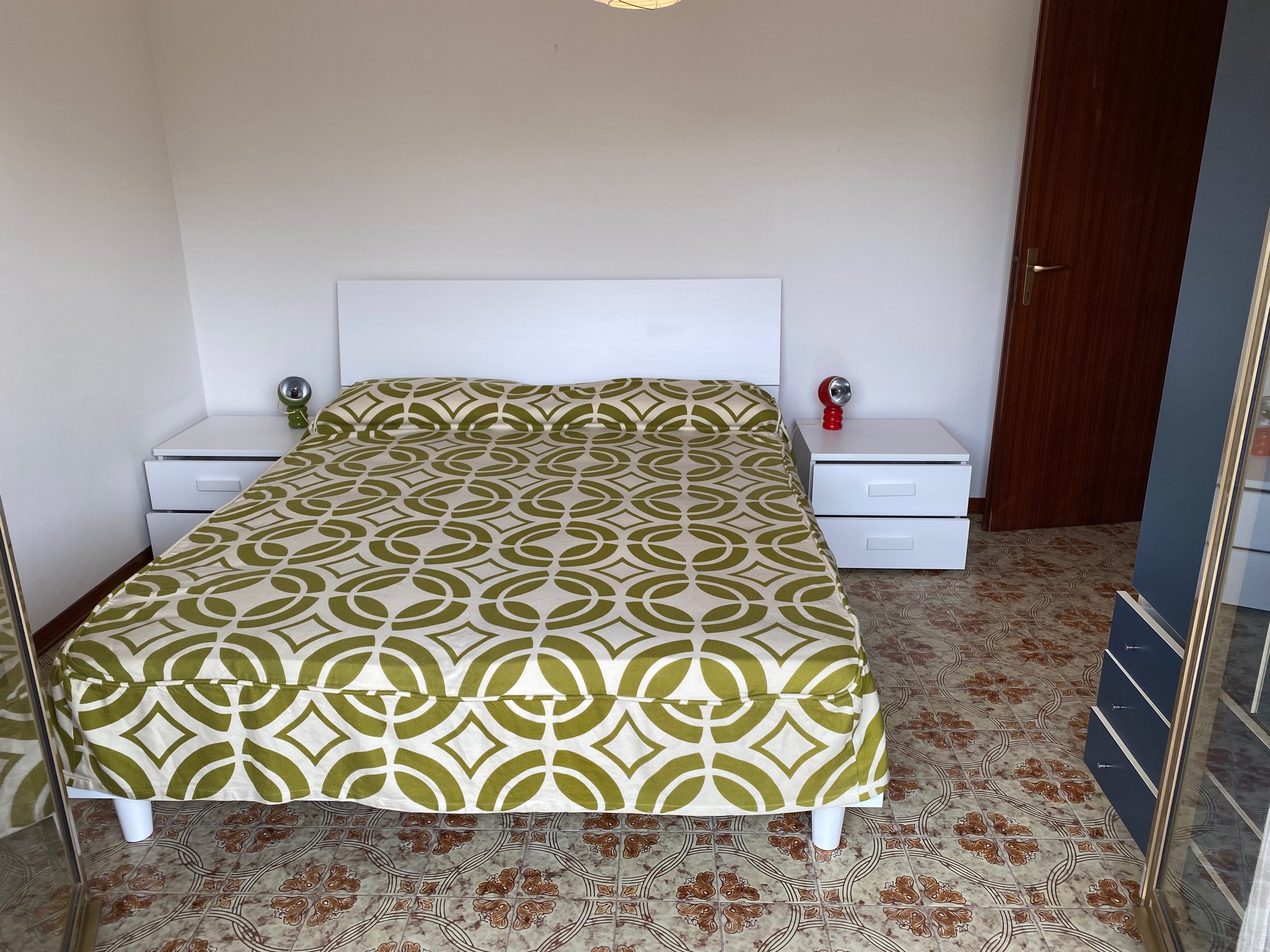 GRADO PINETA centrally, located just steps from shops, apartment on the second floor with lift. It comprises an entrance hall, kitchen corner with window, living room with access to a terrace, a large bedroom with three single beds, a double bedroom with terrace, and a bathroom/shower (with window). Air conditioning combi. Private parking space. Distance to the beach: 253 meters.