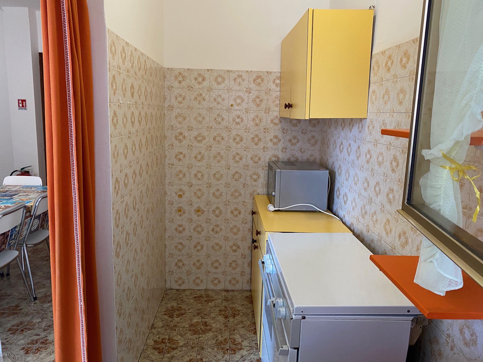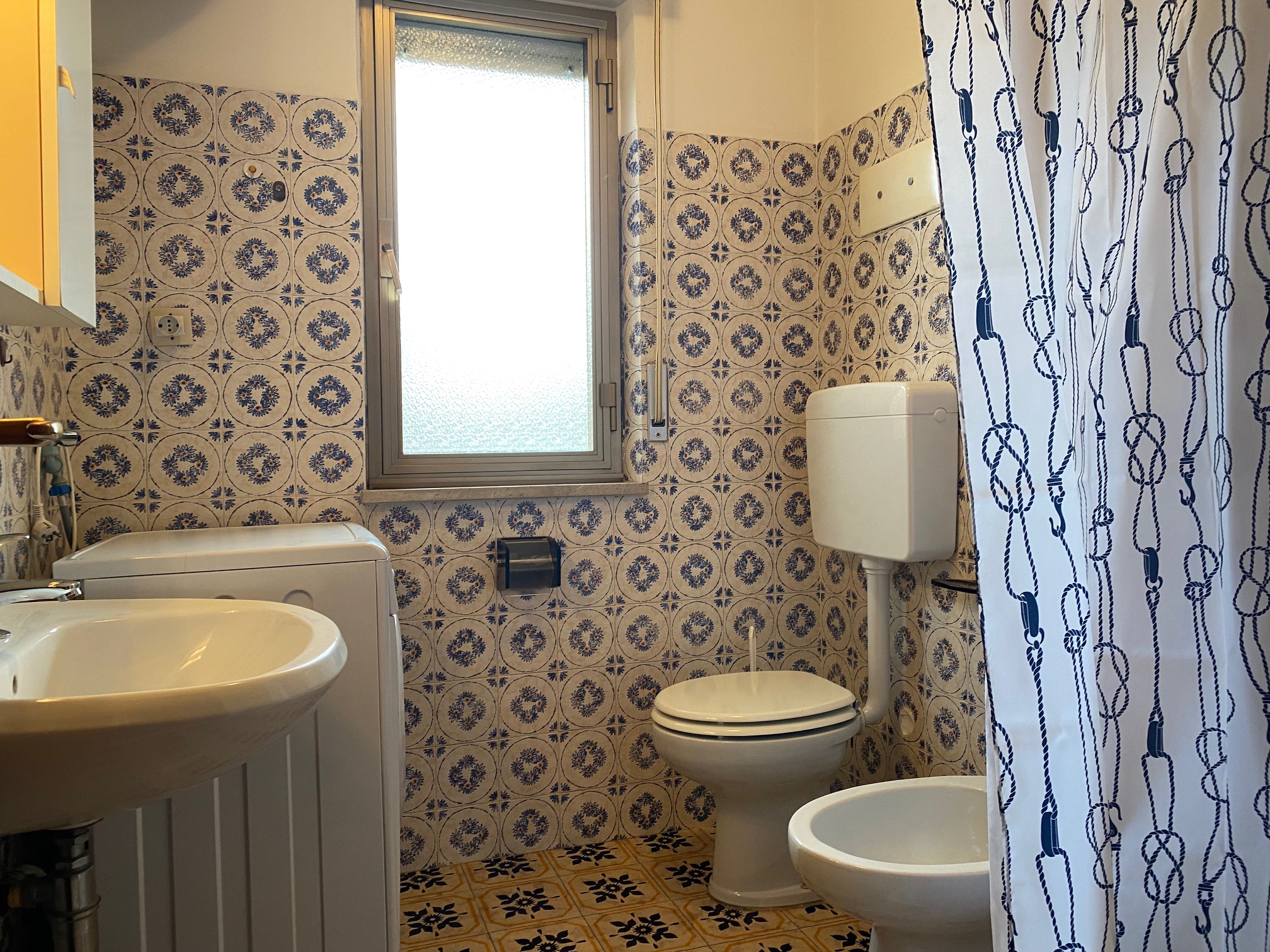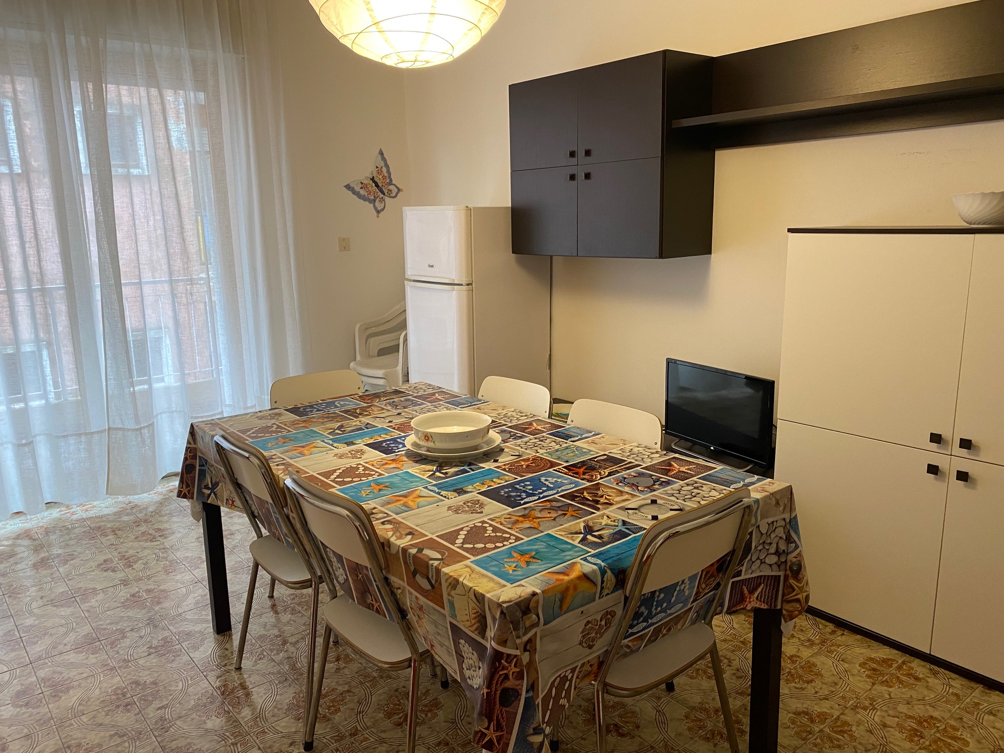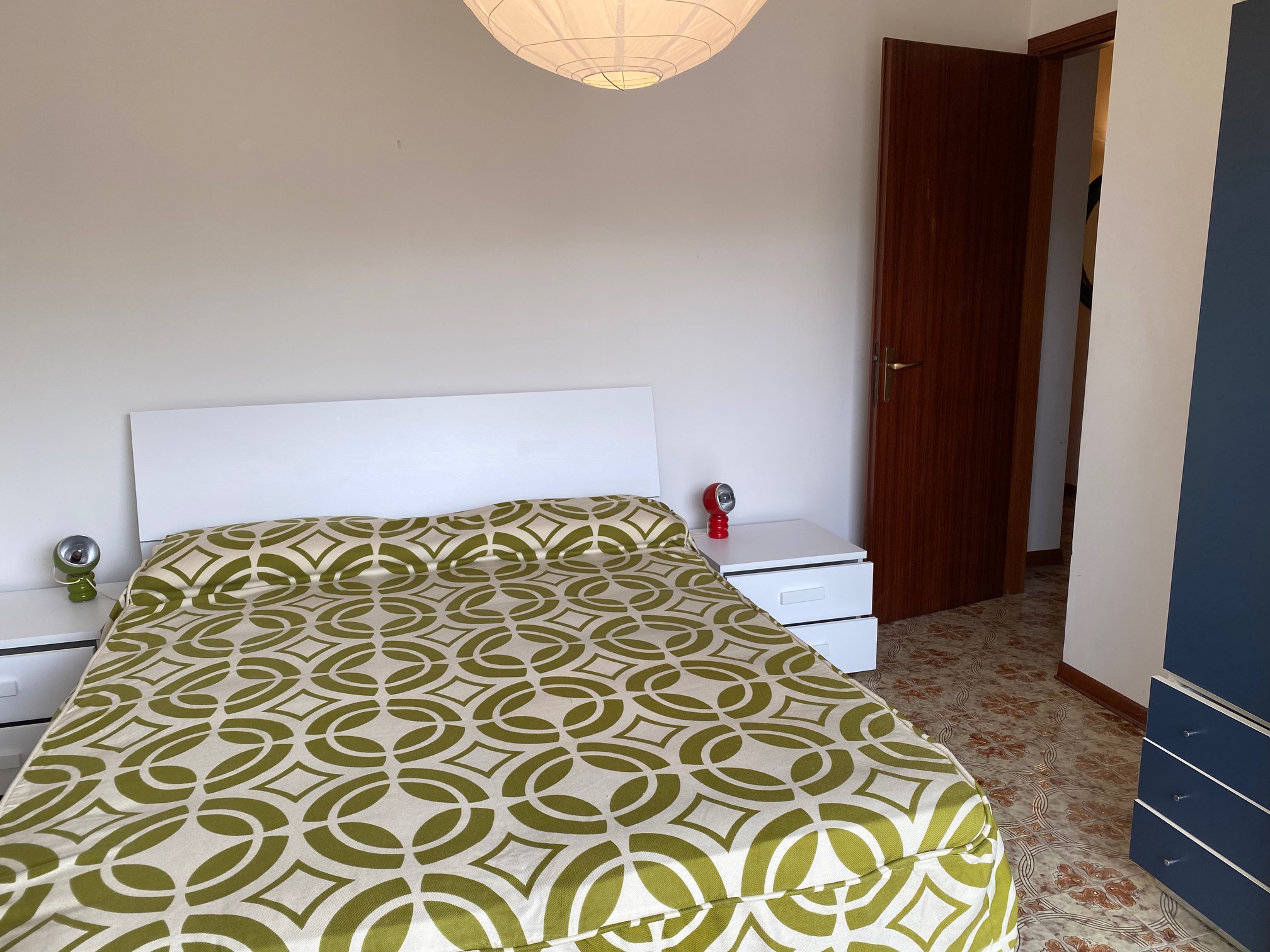 GRADO PINETA centrally, located just steps from shops, apartment on the second floor with lift. It comprises an entrance hall, kitchen corner with window, living room with access to a terrace, a large bedroom with three single beds, a double bedroom with terrace, and a bathroom/shower (with window). Air conditioning combi. Private parking space. Distance to the beach: 253 meters.