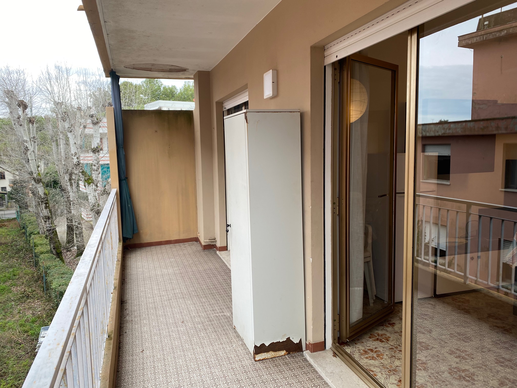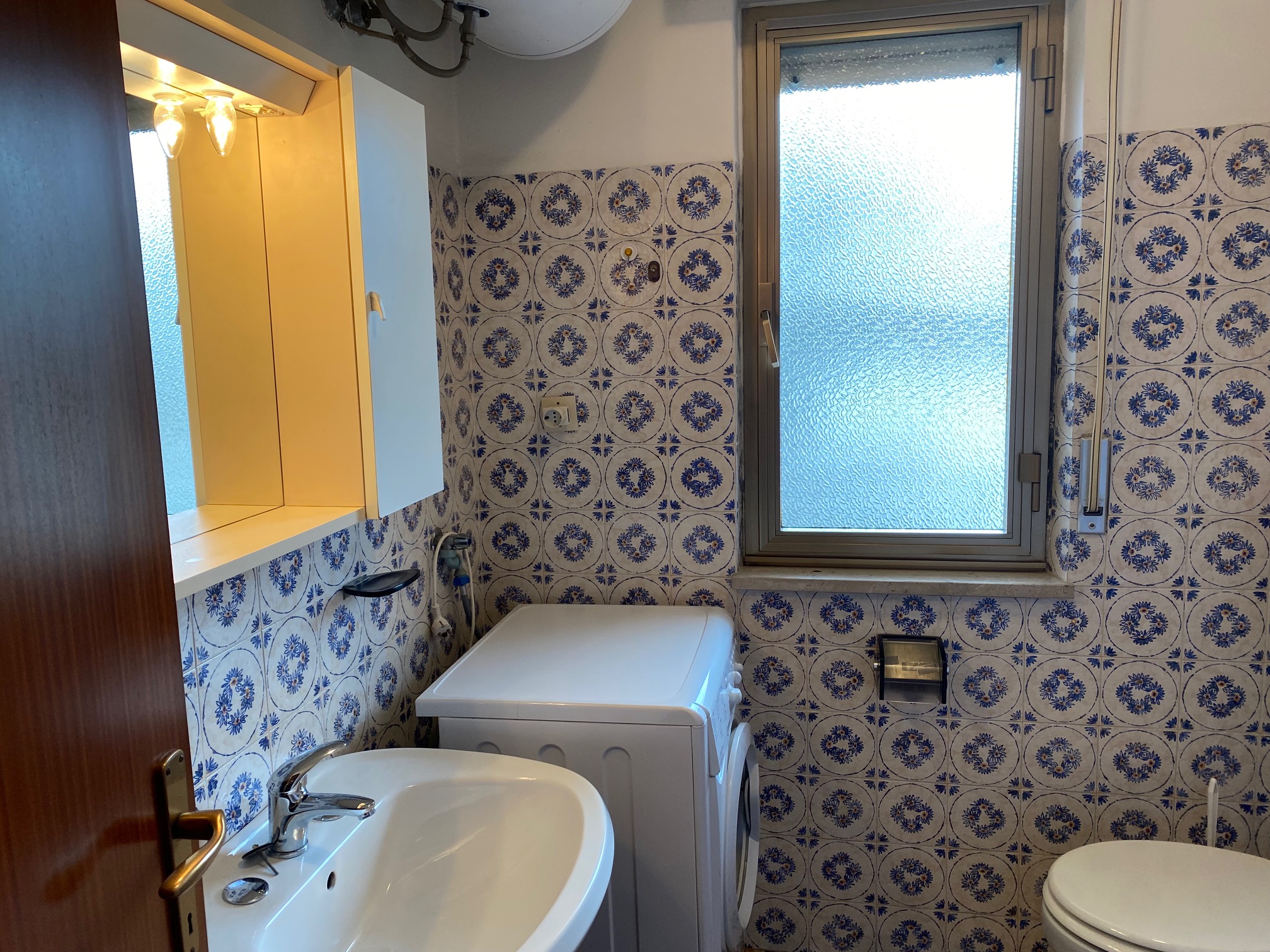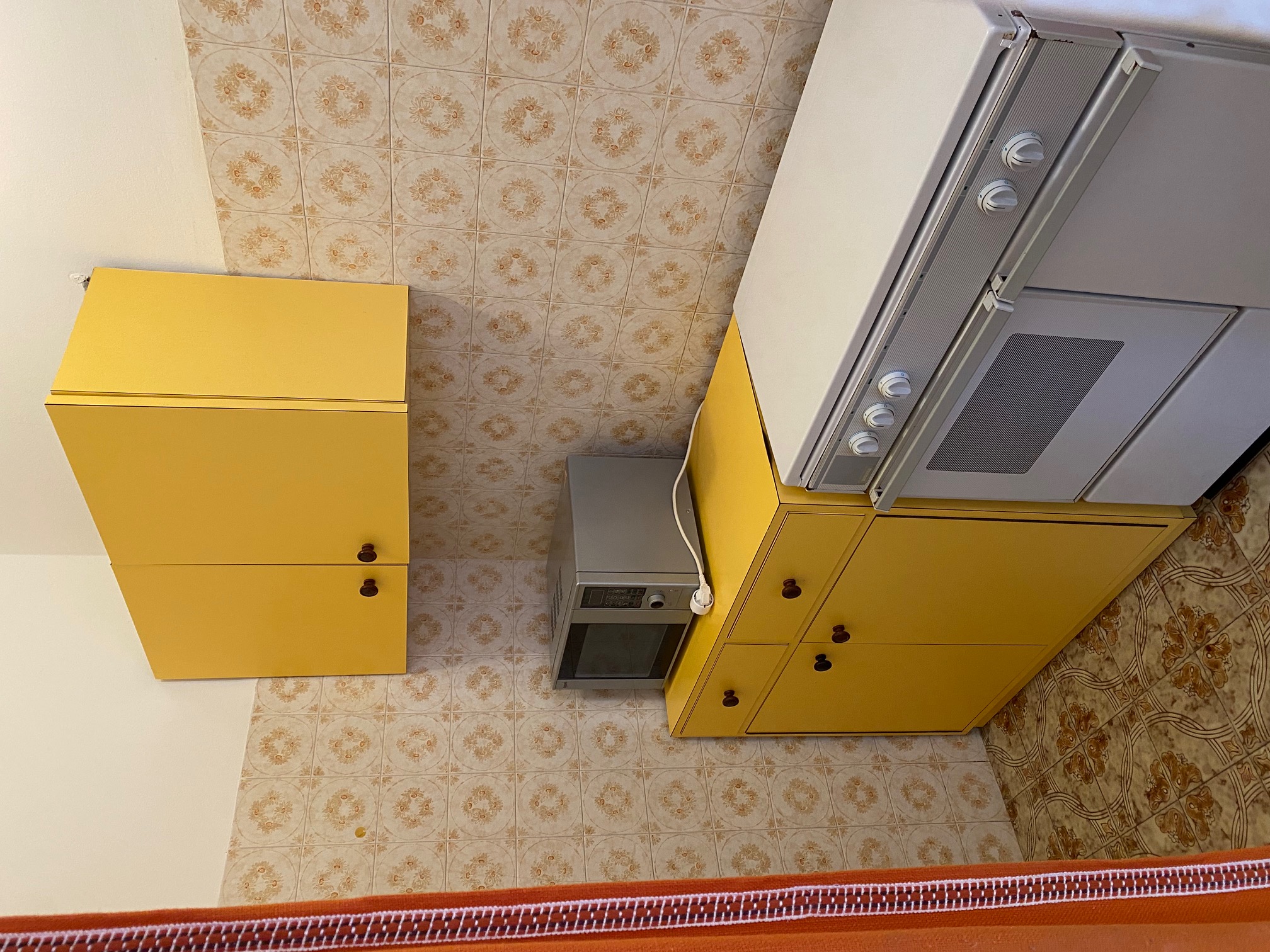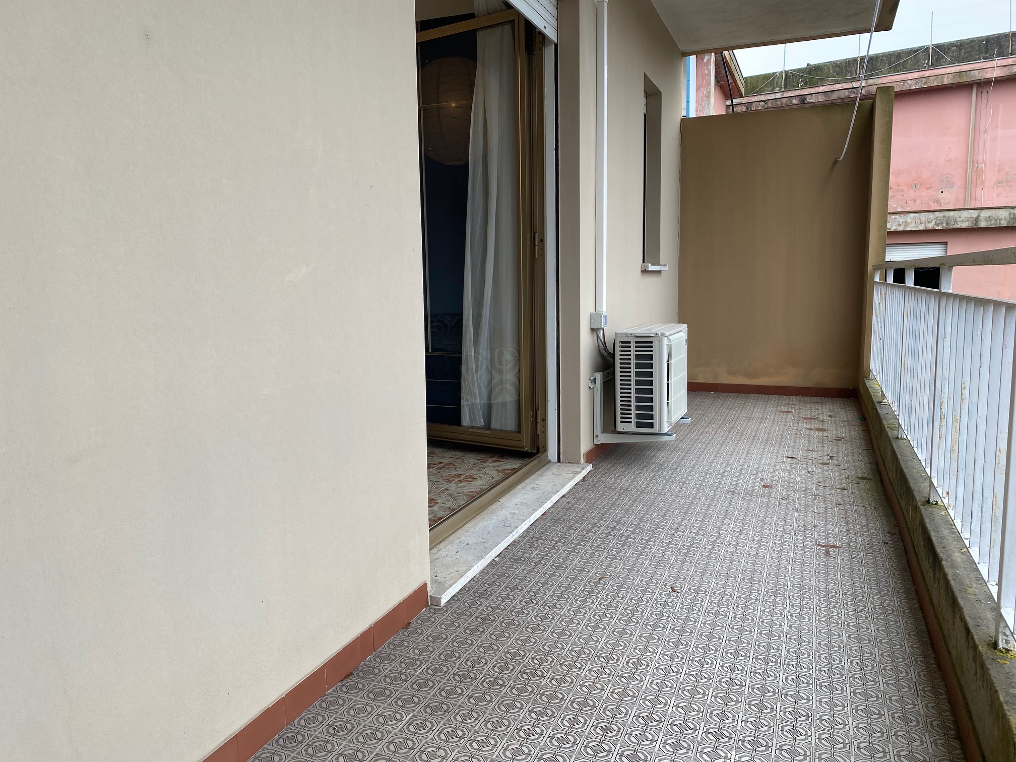 GRADO PINETA centrally, located just steps from shops, apartment on the second floor with lift. It comprises an entrance hall, kitchen corner with window, living room with access to a terrace, a large bedroom with three single beds, a double bedroom with terrace, and a bathroom/shower (with window). Air conditioning combi. Private parking space. Distance to the beach: 253 meters.