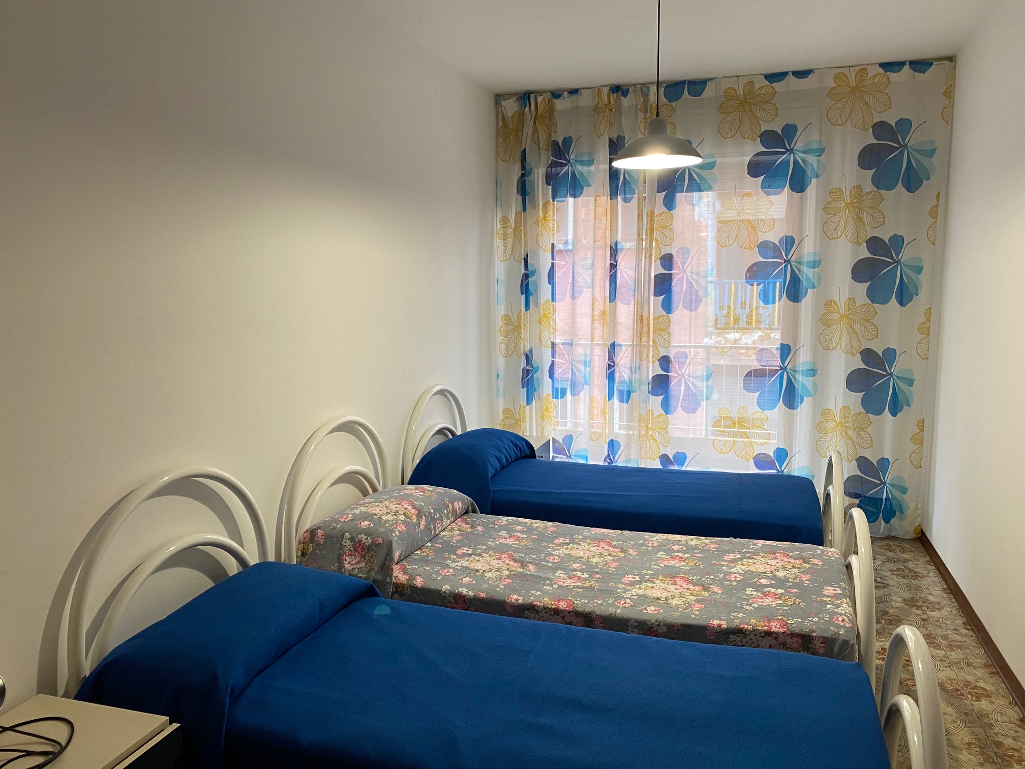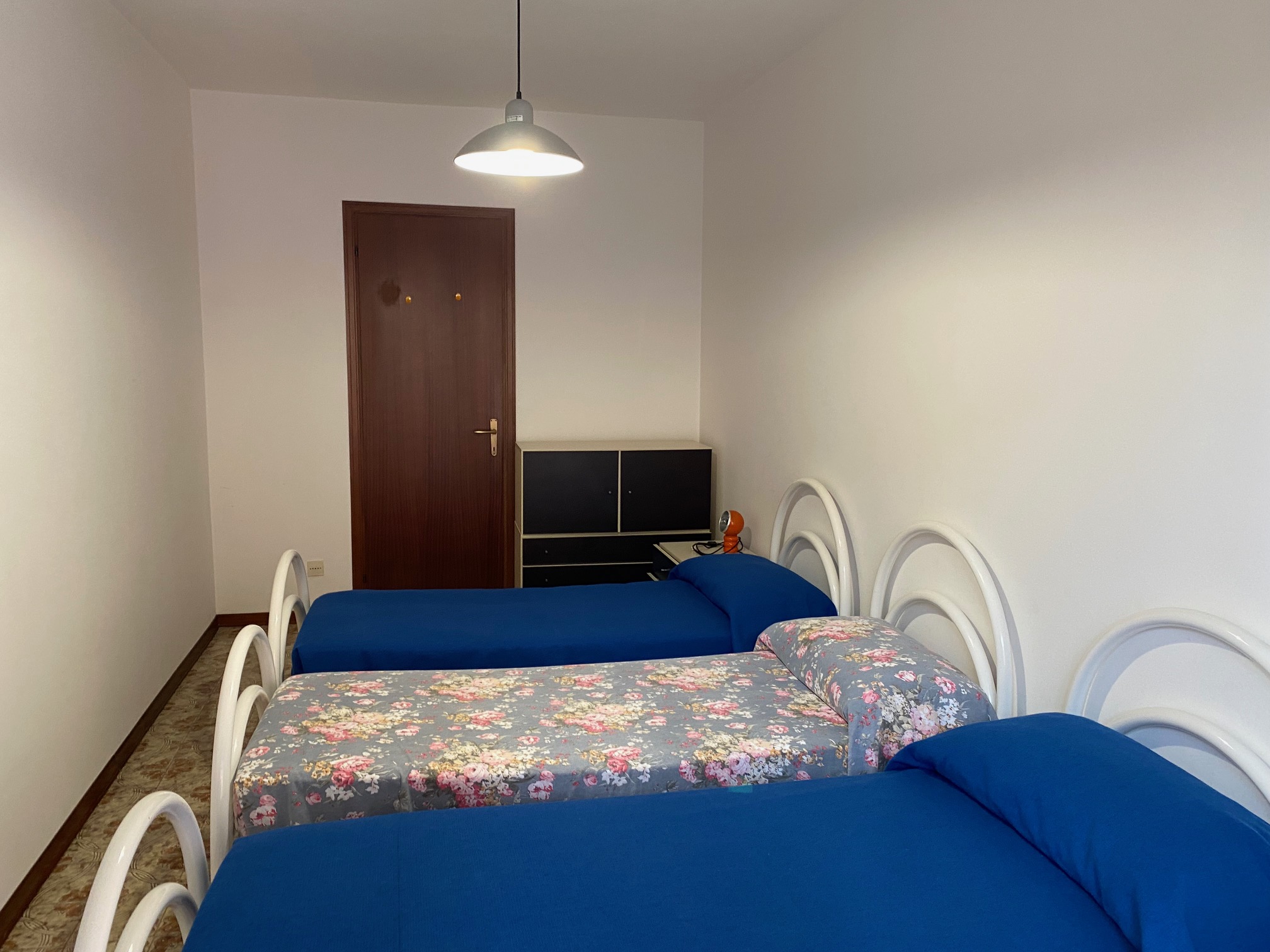 GRADO PINETA zona centrale a pochi passi dai negozi, appartamento sito al 2° piano con ascensore, composto da ingresso, zona cottura finestrata, soggiorno con accesso ad una terrazza, una ampia camera con tre letti singoli, una camera matrimonile con terrazza, servizio/doccia (finestrato). Clima. Posto macchina di proprietà. Distanza spiaggia 253 metri