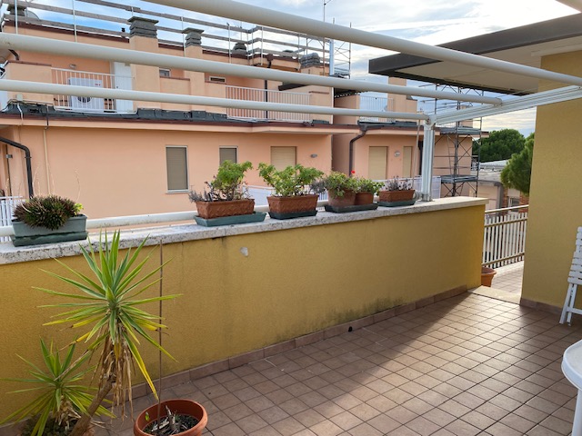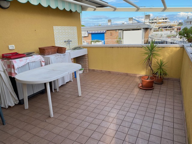 GRADO CITTA’ GIARDINO, a short walk from the THERME and shops, 3rd-floor PENTHOUSE comprising an entrance hall, eat-in kitchen with pantry, large living room, hallway, three bedrooms, two bathrooms (with windows), and two big terraces. Independent heating and air conditioning. Euro 390.000,00.